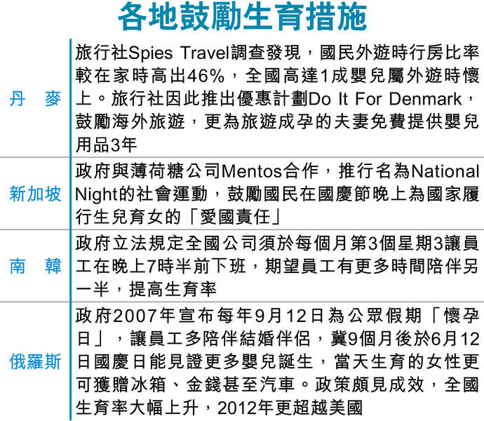 經合組織今年曾指出,成員國單身人士的入息稅率普遍高於有小孩的夫婦,若包括淨社福支出,平均更高約10個百分點,再引單身稅,有雙重徵稅之嫌,亦無助提高生育率,未必適宜在港實行。環球多選擇向生小孩的夫婦派糖,如俄國為孕婦提供免費傢俬,以獎勵機制減低育兒成本、鼓勵生育,或才是正道。